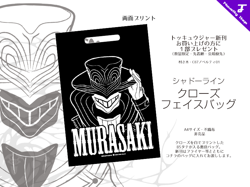 シャドーラインのエレガントさを象徴するような戦闘員・クローズを大きく描いたバッグ。
