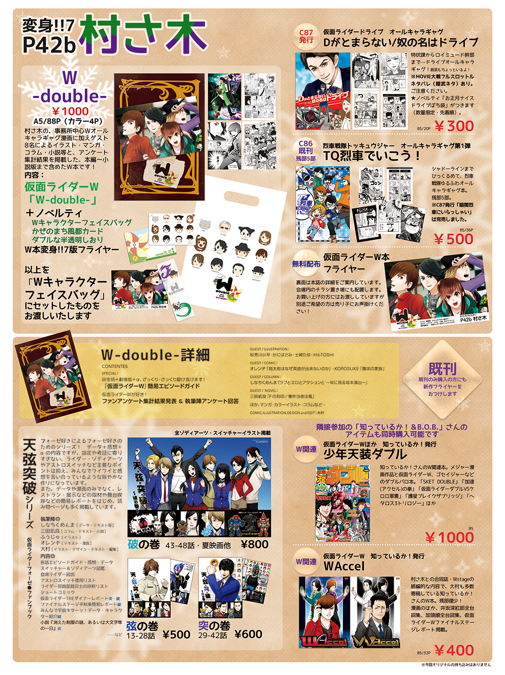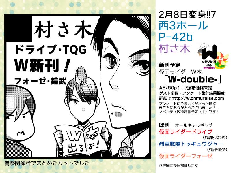 W好きのゲスト様8名をお迎えして、マンガ・イラスト・評論系コラム・小説を寄稿いただきました!! その他、大村のまんがやイラスト(カラーページあり)、企画、ウェブで募集したアンケートの集計結果を掲載。村さ木最後のW本になるかもしれない本…です…!